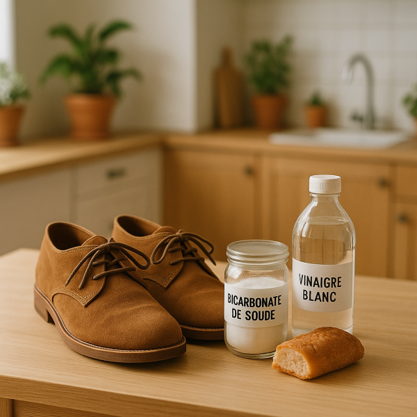 Le bicarbonate de soude est un incontournable dans l'entretien du daim. Il agit comme un absorbant et permet d'éliminer les taches tenaces. Pour l'utiliser, il suffit de saupoudrer la zone concernée, de laisser agir quelques heures, puis de brosser doucement avec une brosse adaptée. Tu seras surprise de voir à quel point il peut redonner éclat et propreté à tes chaussures !