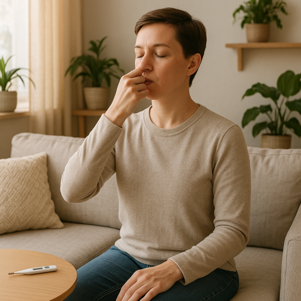 - Fermez une narine : Utilisez votre pouce pour boucher une narine tout en gardant l'autre ouverte.