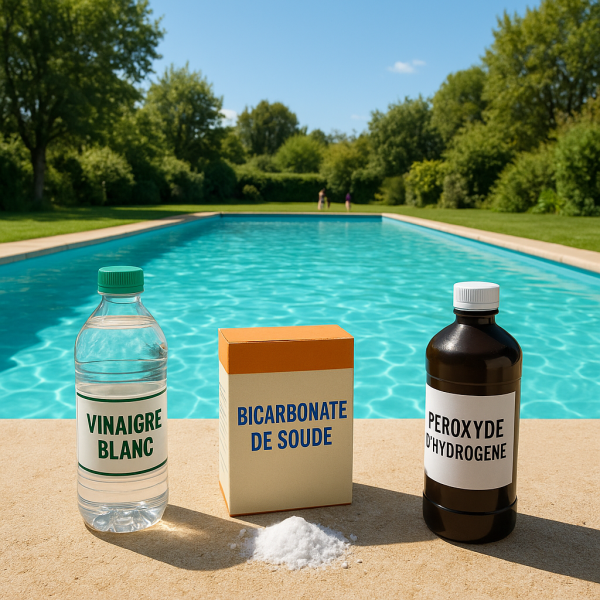 Le peroxyde d’hydrogène est un autre excellent remède ! En plus de désinfecter, il aide à oxygéner l'eau. Utilisez un dosage d'environ 100 ml pour 1 m³ d'eau. Veillez à ne pas mélanger avec d'autres traitements chimiques.